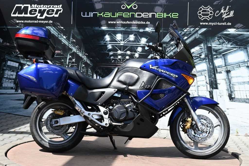 **Willkommen bei Motorrad Meyer. Euer Familienbetrieb seit über 60 Jahren!** **Allgemein:** Interne Nummer für Anfragen: **29993** Zum Verkauf steht eine **Honda XL 1000 VA Varadero Koffer** , Erstzulassung: 04.05.05 , aus 2. Hand. **Zustand:** Das Motorrad befindet sich in einem sehr gepflegten und sehr guten Zustand. Tüv: 0 **Lieferumfang:** * Bedienungsanleitung * COC-Papier * 2 Schlüssel * Serviceheft **Zubehör/Umbauten:** * Sturzbügel von SW-Motech * MRA Vario-Screenscheibe * Bagster Tankschutzhaube * RAM-Mount Halterung Honda * Scottoiler * Griffheizung **Eintausch:** Unter www.wirkaufendeinbike.de bewerten wir dein Bike gerne kostenlos und unverbindlich. **Finanzen:** Finanzierungen ab 5,99% und einer Laufzeit von bis zu 120 Monaten auch ohne Anzahlung möglich. **Garantie:** Bei Neufahrzeugen, Tageszulassungen und Vorführfahrzeugen zwei Jahre Herstellergarantie ab Übergabe oder Erstzulassung (je nachdem was früher Eintritt) -- Garantieerweiterung bis zu 5 Jahre möglich. Bei Gebrauchtfahrzeugen 12 Monate Sachmängelhaftung ab Übergabe. Erweiterte Garantie auf Anfrage möglich. Export: We speak english. Wir sind Yamaha Vertragshändler und seit über 60 Jahren - mittlerweile in 3. Generation - in und um Aachen die Anlaufstelle für neue und gebrauchte Motorräder und Roller. Wir haben ständig über 300 Fahrzeuge auf Lager. **Unsere Öffnungszeiten:** **Verkauf Hauptfiliale** Mo.-Fr.: 09:00 Uhr bis 17:00 Uhr Sa.: 09:00 Uhr bis 14:00 Uhr **Vom 1.November bis zum 28. Februar ist montags saisonbedingt geschlossen.** **Werkstatt:** Mo.-Fr.: 07:00 Uhr bis 16:00 Uhr, **Vom 1.November bis zum 28. Februar ist montags saisonbedingt geschlossen.** **Websites:** * www.motorrad-meyer.de * www.wirkaufendeinbike.de * www.mycl-turell.de * www.dealer2dealer.de Diese Angaben sind unverbindlich. Der Verkäufer haftet nicht für Eingabe- oder Datenübermittlungsfehler. Irrtümer, Änderungen oder Zwischenverkauf vorbehalten.