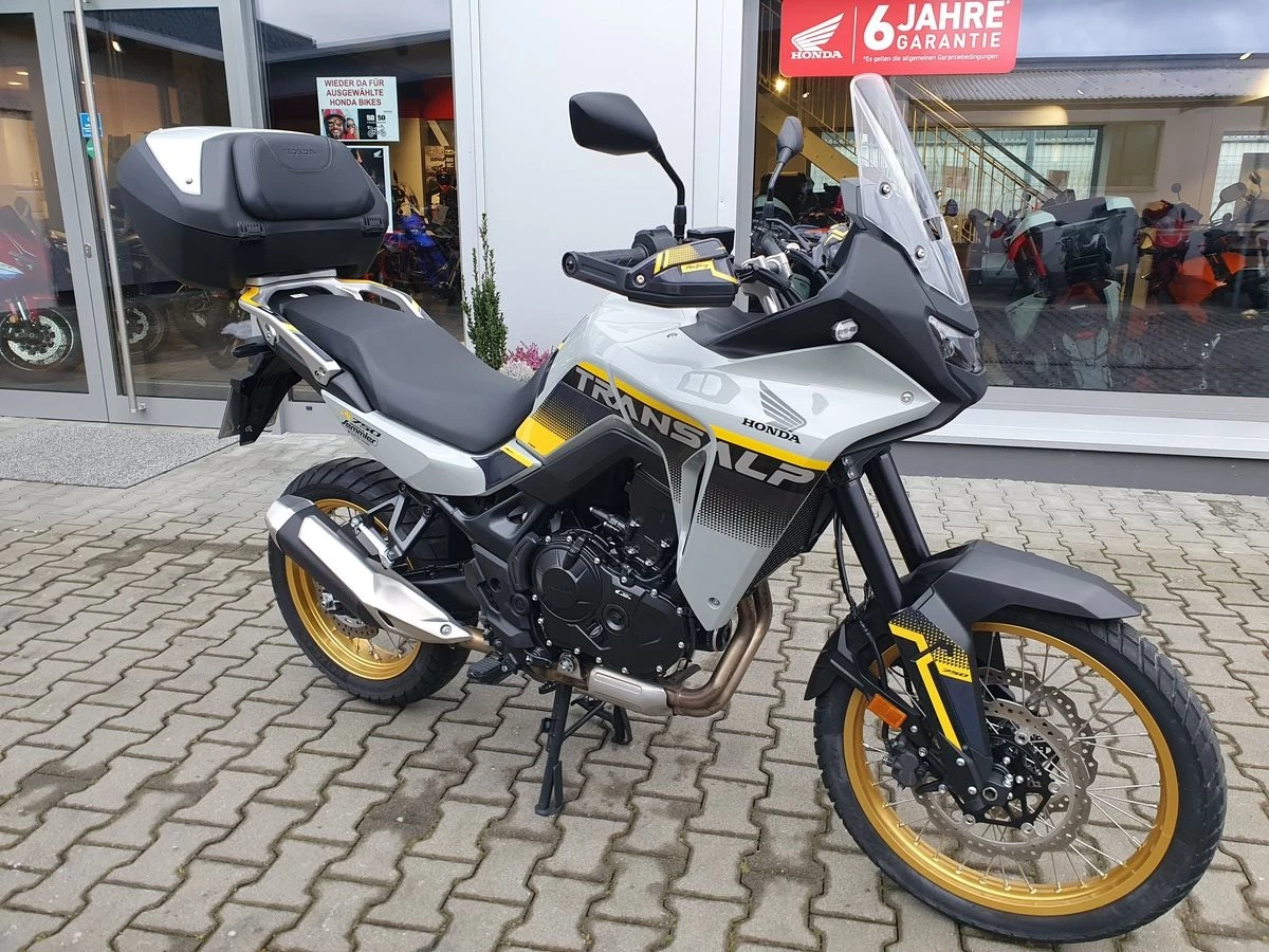 Honda XL750 TRANSALP in pearl deep mud gray Modelljahr 2025 ab sofort Verfügbar! Die Transalp ist unsere Vorführmaschine aus der Saison 2025. Die Maschine hat einen Hauptständer, einen SW-Motech Pro Tankring, das Honda Top-Case und eine 12 Volt Steckdose im Cockpit. Wir haben ihr noch einen Satz stylischer Schutzaufkleber in der passenden Farbe montiert, welche das Motorrad noch mal aufwerten und den besten Schutz vor Kratzern bieten. Die Maschine hat die 1. Inspektion gemäß Wartungsplan bekommen und bekommt bei Verkauf noch den TÜV neu. Sie ist einem Kunden bei einer Probefahrt mal in der Kurve weg gerutscht und muss daher als reparierter Unfallschaden verkauft werden. Alle beschädigten Teile wurde zu 100% von uns ausgetauscht. Probefahrt gerne nach der Terminabsprache. Honda XL750 Transalp Modelljahr 2025 / Vorführfahrzeug mit Hauptständer mit Top-Case mit 12 Volt Steckdose im Cockpit mit SW-Motech Pro Tankring mit großem Schutzaufkleber Setz in gelb / grau Service Neu TÜV Neu 92 PS und 75 NM Sitzhöhe von 850 mm ( nidriege & hohe Sitzbank optinal ) PS: zum Probe fahren haben wir die Sitzbänke auch vor Ort Gewicht voll getankt von 208 kg aufrechte Sitzposition und angenehmer Kniewinkel Endurobereifung mit 18 Zoll hinten und 21 Zoll vorne Sehr leichter Stahlrahmen mit nur 18,3 KG 5 Zoll TFT Farbdisplay LED Blinker und Scheinwerfer Smart Connect für Android und IOS 4 Fahrmodi + 1 einstellbarer User Mode Taraktionskontrolle (abschaltbar) ABS hinten abschaltbar Wheeli Kontrolle / je nach Fahrmodus Auch drosselbar auf 48 PS für den A2 Führerschein Umfangreiche Ausstattungspakete buchbar Top Finanzierung über die Honda Bank GmbH möglich Als HONDA-VERTRAGSHÄNDLER mit 40-jähriger Erfahrung bieten wir sorgfältig ausgewählte und geprüfte Gebrauchtfahrzeuge mit 1 Jahr Gewährleistung an. Auf Wunsch bieten wir Ihnen Finanzierungs-Möglichkeiten und die eventuelle Inzahlungnahme Ihres jetzigen Fahrzeugs an. Zwischenverkauf und Irrtümer vorbehalten. Bei weiteren Fragen stehen wir Ihnen gerne bereit. Öffnungszeiten: Montag - Dienstag, Donnerstag - Freitag: 09:00-12:00,13:30-18:00 Uhr Mittwoch: 13:30-18:00 Uhr Samstag: 09:00-13:00 Uhr