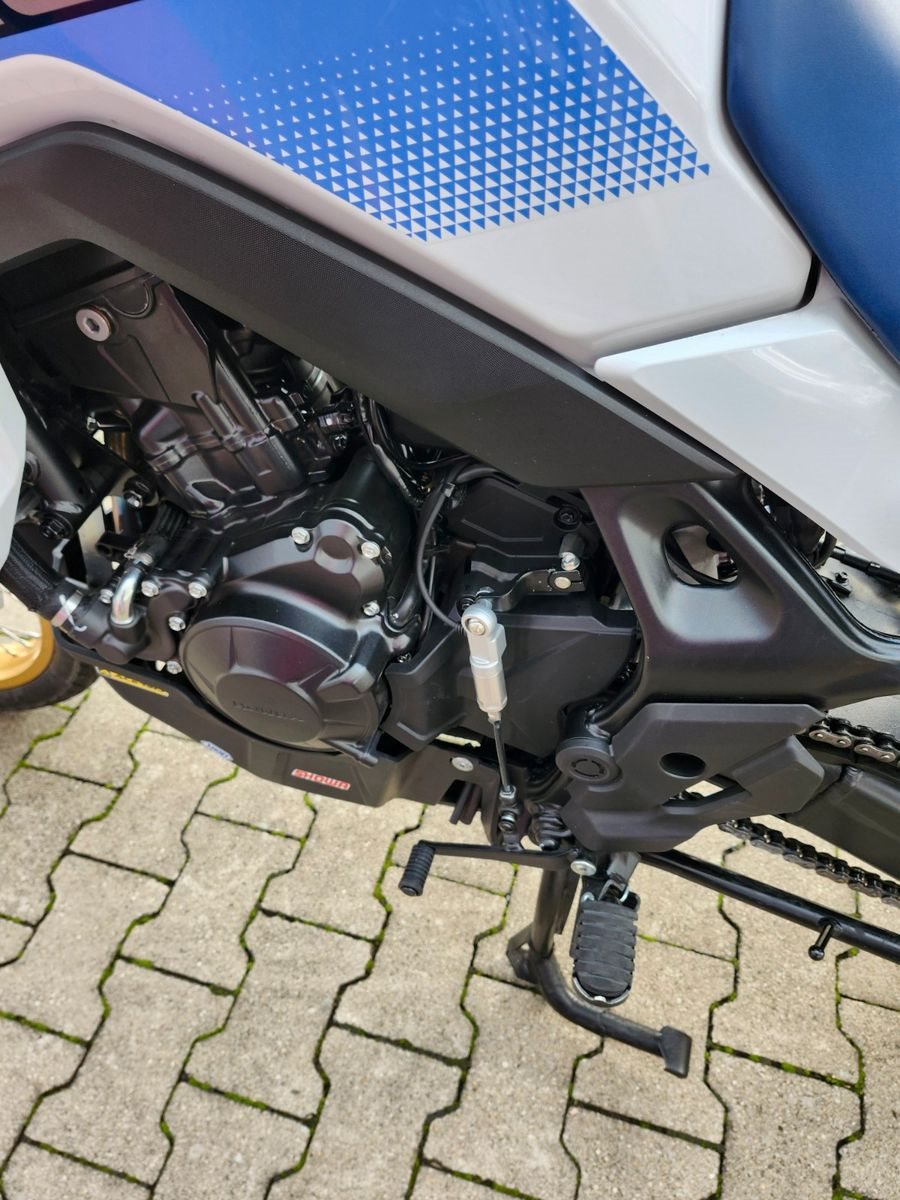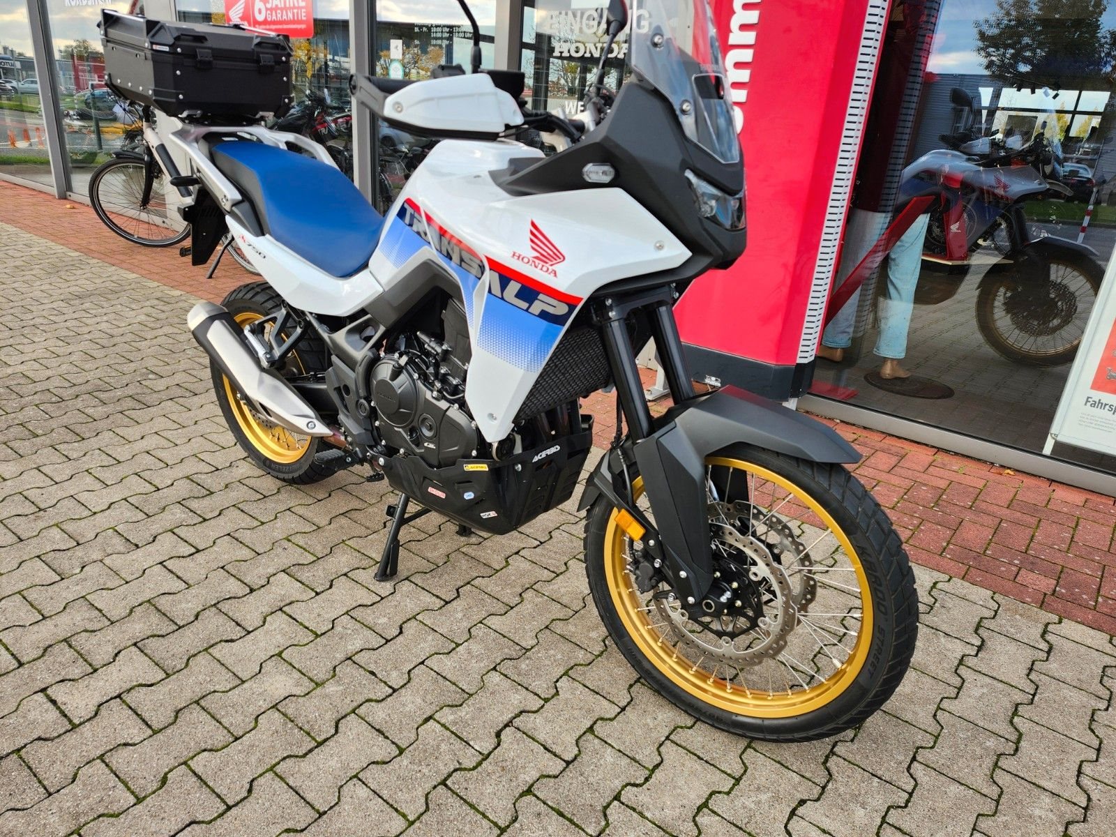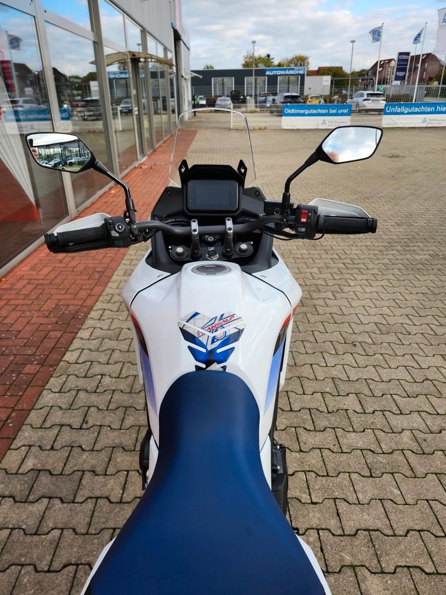 **Update 2025 : neuer Scheinwerfer , Fahrwerk überarbeitet ... Leistung und Drehmoment für jede Tour ** Incl Topcase, Quickshifter, Motorschutz, Handguards Die Leistungsdaten sind zweifellos beeindruckend: 67,5 kW (92 PS) und ein Drehmoment von 75 Nm. Der wichtigste Unterschied ist jedoch, wie der völlig neuartige 755-cm-Parallel-Zweizylindermotor mit 8 Ventilen Leistung erbringt. Unsere Air Vortex-Ansaugtechnologie sorgt für mehr und geschmeidigere Dynamik im unteren und mittleren Drehzahlbereich, während die spezielle Ni-SiC-Beschichtung der Zylinder die Reibung verringert und für mehr Leistung bei hohen Drehzahlen sorgt. Der Motor liefert vielseitige Leistung für jede Fahrt, ob auf unbefestigten Strecken, in der Stadt oder auf der Landstraße, mit Sozius oder voll beladen. **Authentisches, robustes Design** Wir haben die Transalp zur perfekten Begleiterin auf Abenteuern gemacht - wohin auch immer sie führen. Kein Teil zu viel. Design und Merkmale sind robust und zweckmäßig. Im Stadtverkehr, auf der Autobahn oder auf endlosen Trails - die schlanke Mittelsektion und die elegante aerodynamische Verkleidung sorgen für Freiheit und Windschutz. Die wunderschöne Tricolour-Lackierung ist selbstverständlich eine Hommage an die originale XL600V und markiert die Rückkehr einer Ikone. **Um den Block oder über den Gebirgspass** Dieses Motorrad ist für lange Touren gebaut. Im Mittelpunkt steht echter Komfort - für Fahrer und Sozius. Mit einer Sitzhöhe von 850 mm und einem Gewicht von 208 kg ist die Transalp selbst bei Schrittgeschwindigkeit leicht zu handhaben. Die entspannte, jedoch aufrechte Fahrposition sorgt für gute Sicht und natürlichen Komfort. Die Verkleidung und Scheibe sind kompakt und hochgradig funktional. Die sorgfältig ausgearbeitete Aerodynamik erhöht die Stabilität und reduziert Windgeräusche und Luftverwirbelungen bei hohen Geschwindigkeiten. **Du hast die Wahl** Vier voreingestellte Fahrmodi - **Gravel, Sport, Standard und Rain** - stimmen Motorleistung, Bremsen, Honda Selectable Torque Control (HSTC), Wheelie-Control und ABS auf die Bedingungen und unterschiedliches Terrain ab. Der User-Modus ermöglicht die individuelle Einstellung der einzelnen Parameter, einschließlich **ABS-Abschaltung hinten** für Fahrten im Gelände. Die Steuerung erfolgt über den 5-Zoll TFT-Farbdisplay. Dank der Honda Sprachsteuerung für Smartphones bleibst du unterwegs in Kontakt. Die komplette LED-Beleuchtung zeichnet sich durch das ESS-Notstoppsignal (Emergency Stop Signal) aus, das bei Notbremsungen den nachfolgenden Verkehr warnt. ----Weitere Informationen, Finanzierung und Inzahlungnahme auf Anfrage. Beachten Sie bitte auch die weiteren Neu- und Gebrauchtfahrzeuge, in unserem ständig wechselnden Bestand. Wir zeichnen uns durch unsere langjährige Erfahrung, als Honda-, Vespa-, Piaggio-,Aprilia,- und V-Moto Vertragshändler am Niederrhein, aus und bieten Ihnen, neben neuen und gebrauchten Motorrädern, auch zuverlässigen Werkstatt-Service rund um alle japanischen Marken. Gerne stehen wir Ihnen zu unseren regulären Öffnungszeiten auch telefonisch und persönlich zur Verfügung um Ihnen schnelle Hilfe bei Fragen um und über unsere Fahrzeuge leisten zu können. Wir wünschen Ihnen viel Spaß und Erfolg bei der Suche nach DEM Motorrad das zu Ihnen passt. Ihr Motorrad Center Schmitz-Peters Team Die Europäische Kommission stellt eine Plattform zur Online-Streitbeilegung (OS) bereit, die Sie unter folgendem Link finden: http://ec.europa.eu/odr
